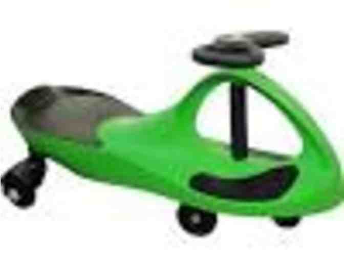 PlasmaCar is an expertly designed ride-on that uses on inertia, centrifugal force and kid power for a fast and smooth ride! Move the steering wheel back and forth to move, stop steering to slow down & put feet out to stop. Up to 220 lbs. Ages 3 +