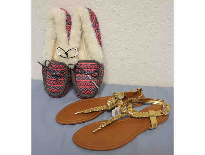 Aeropostale knit moccassin slipper with faux fur lining, gray/pink. Manmade materials, Rubber soles