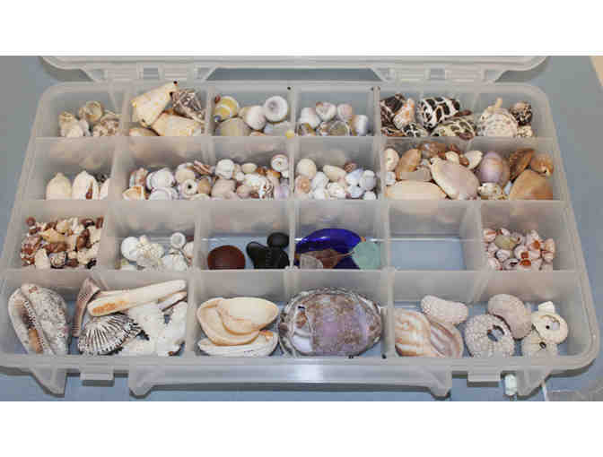 14" x 8.5" Divided compartment container with a variety of seashells for your next craft/jewelry making project.