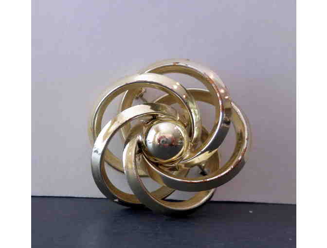 Shiny gold-tone swirl pin measures 1.25" diameter.