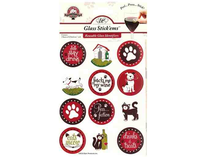 Doggie & Kitty Party Drink Glass Stick'ems -- New