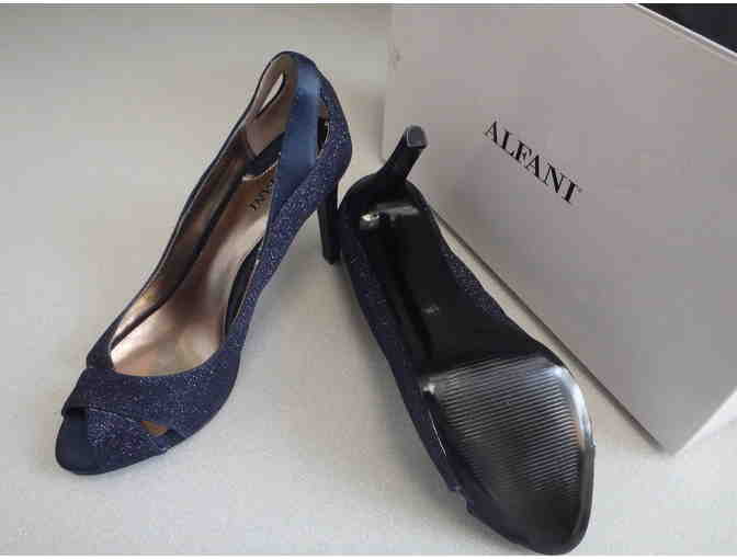 Get ready for a fancy night out with these Alfani Navy blue, sparkly heels! These shoes are brand new, never worn. Heel is about 4 inches high and the front features a strappy look.