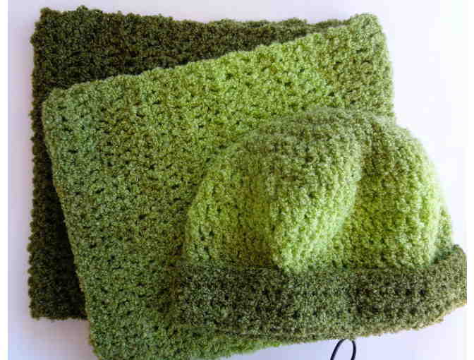 Hand-Crocheted Green Hat & Scarf Set -- New
