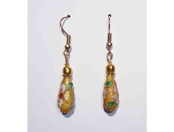 Hand-Crafted Gold Cloisonne Earrings -- New