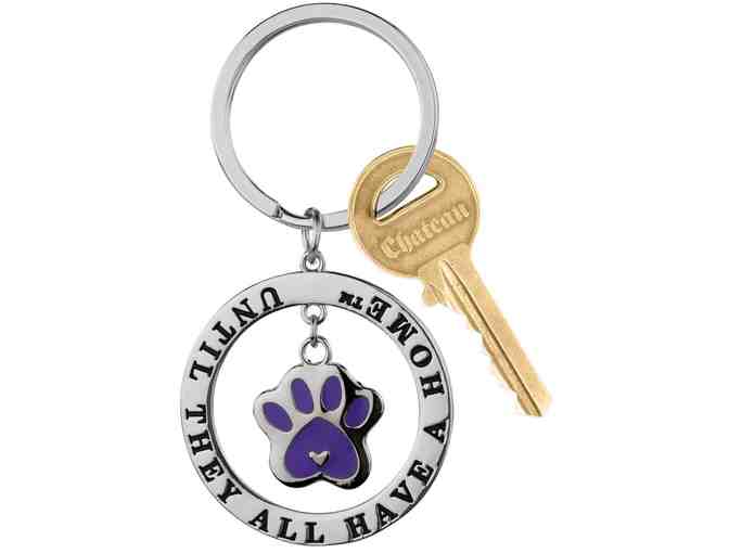 Wherever you go, take this reminder with you -- we won't give up on animal rescue "Until They All Have A Home." Has purple enamel pawprint dangle inside a silver-tone ring that measures 1.5" diameter (3.8 cm).