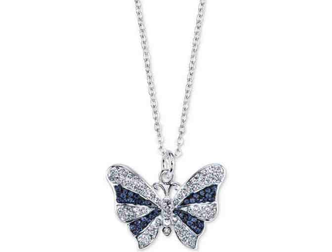Silver-Tone Blue Crystal Butterfly Necklace -- New