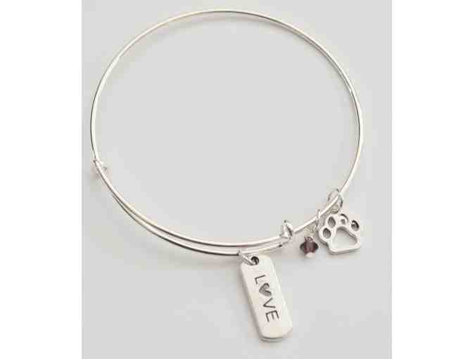Paw Print and Love Bangle Bracelet -- New
