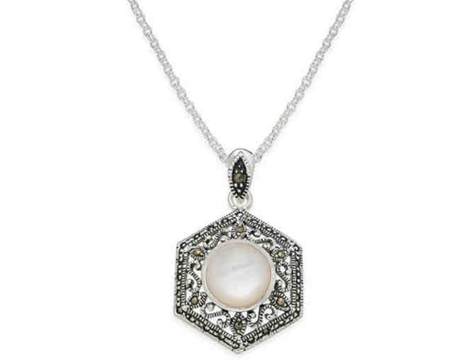 Mother-of-Pearl and Marcasite Filigree Silver-Plate Pendant Necklace -- New