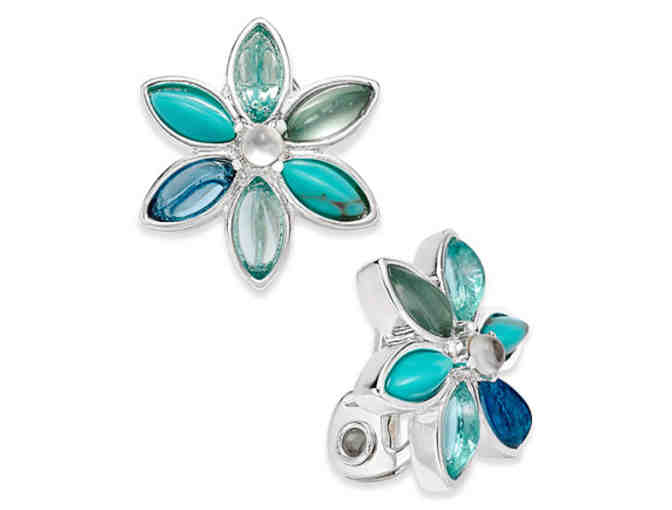 Varying shades of blue highlight the petals of these fabulously fresh flower clip-on stud earrings by Anne Klein. Fashioned in silver-tone. Approximate diameter: 4/5”. Comes in gift box.