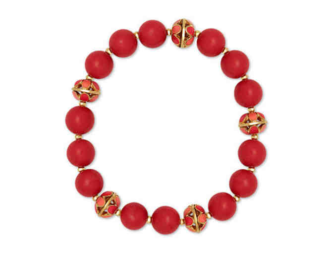 Add a radiant finishing touch with this red beaded stretch bracelet by Anne Klein, fashioned in gold-tone mixed metal. Approximate diameter: 2-1/4” that stretches to fit average wrist.