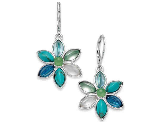 Silver-Tone Blue & Green Stone Flower Drop Earrings -- New