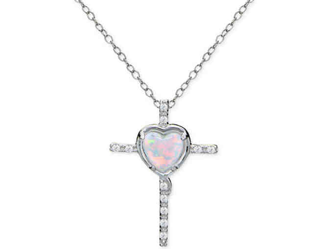Love and faith intertwine in this enchanting cubic zirconia and iridescent stone heart cross pendant necklace created by Giani Bernini in sterling silver. Approximate length: 16". Approximate drop: 7/8”. Comes in gift box.