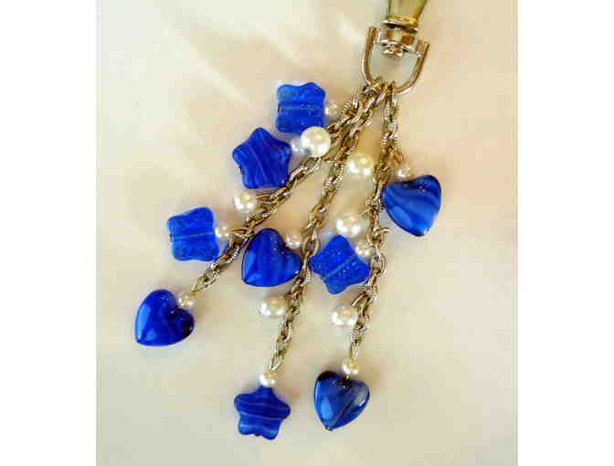 Hand-Crafted Blue Hearts & Butterflies Bag Charm -- New