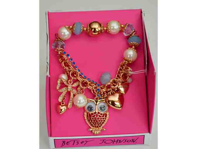Rose Gold-Tone Owl Stretch Charm Bracelet by Betsey Johnson -- New