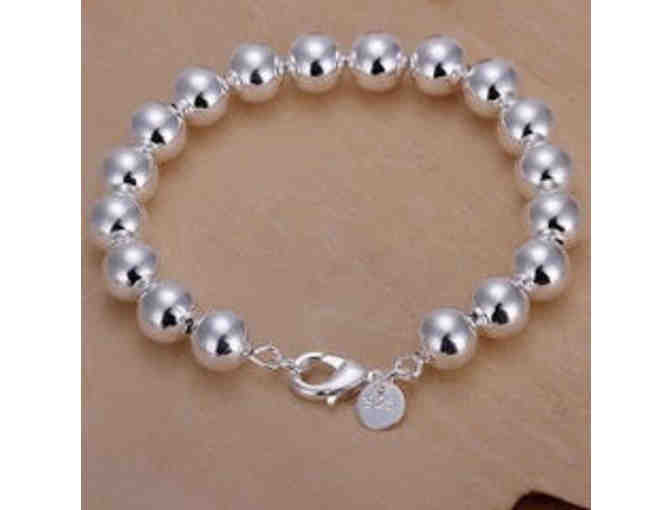 This bracelet features a row of 10mm high polished silver beads that come together with a lobster claw closure. The smooth beads are comfortable and one can dress it down with jeans, or wear with your dressy outfits of any color. This timeless bracelet will compliment your entire silver jewelry collection.