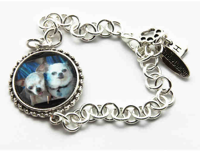 Beautiful, adjustable charm braclet which includes photo of Harley & Teddy, plus a letter "H" charm and a pawprint charm. It's adjustable up to 8.5". By Plunder Designs.