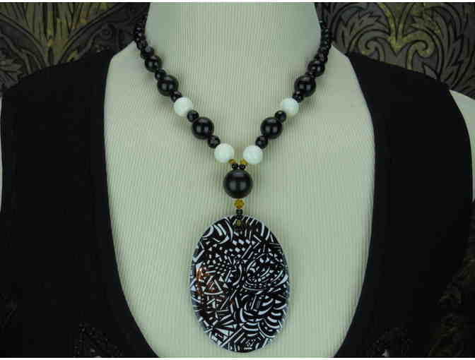 "BLACK AND WHITE": 1/Kind Necklace features Genuine Black Onyx and Unique Art Pendant!
