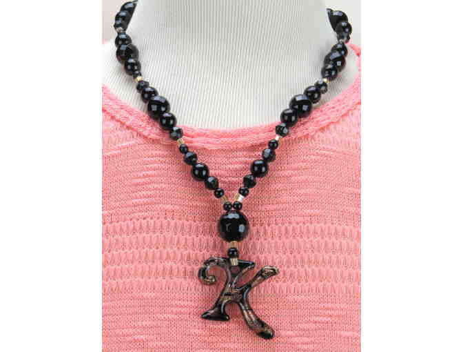 #754: 1/Kind Necklace w/Semi Precious Gems! Unique "K" Initial Pendant!