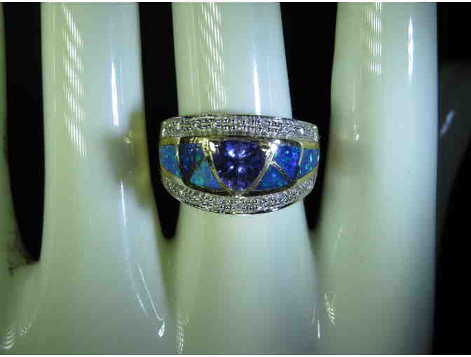 #9: EXTREMELY RARE AND PRECIOUS AUSTRALIAN OPAL AND TANZANITE RING W/DIAMONDS!