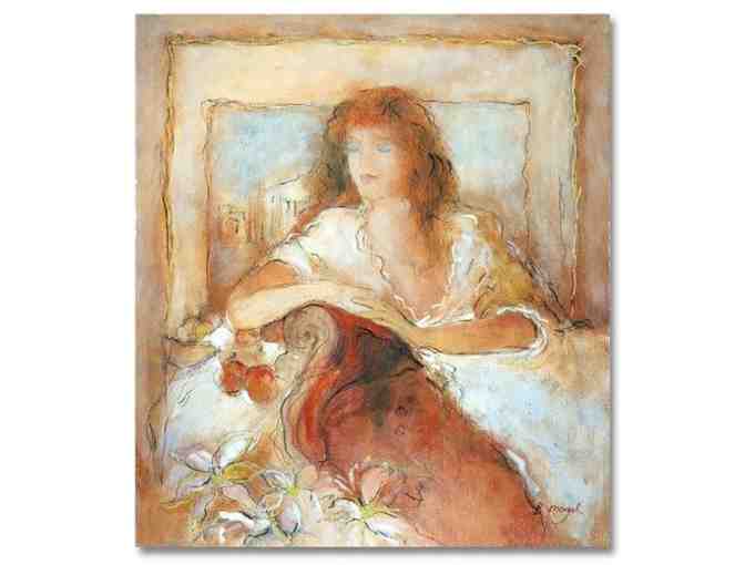 Magal's simple calligraphic drawing of the female form or a flower-filled vase is the foundation of her personal style that she puts into her work. To these, the brilliant washes of lively colors act as a counterpoint, with the deeper and warmer hues evoking the luminosity of medieval stained-glass windows.