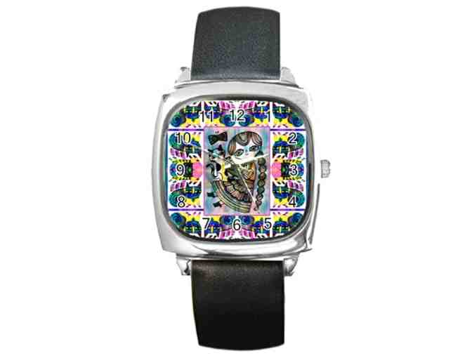 This metal timepiece is a perfect addition to your watch collection. Available in various style and shapes, this unisex square shape watch features a WORK OF ART from the most collectible ART MASTERS in history in tandem with today's best selling POP artists!
