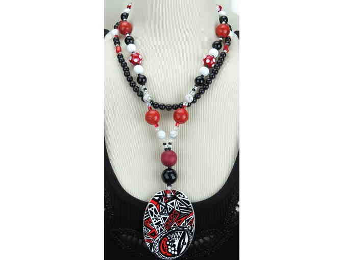 • FEATURES:  BLACK ONYX, SPONGE CORAL, PORCELAIN ART PENDANT