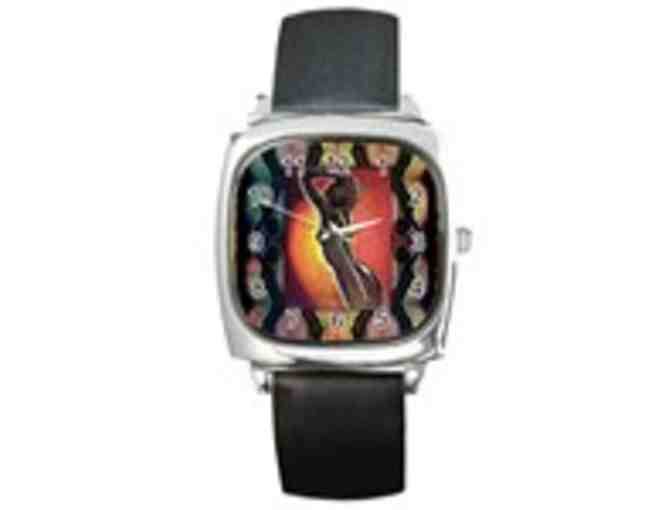 This metal timepiece is a perfect addition to your watch collection. Available in various style and shapes, this unisex square shape watch features a WORK OF ART from the most collectible ART MASTERS in history in tandem with best selling Pop Artists of today!