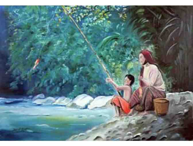 "Southern Thai Boy Fishing With His Mother" by Derek Rutt!: Ltd Ed Canvas: 10.00" x 7.00"