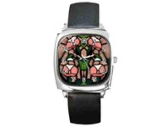 "Stained Glass Floral": Custom Made Leather band ART watch: Exclusive to ART4GOOD Auctions