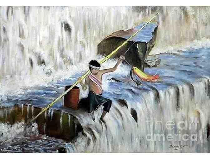 "Thai Boy Pole Fishing" by Derek Rutt: 10.00" x 7.00"