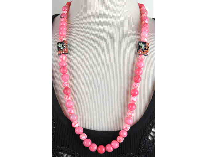 #471: 1/KIND GEMSTONE NECKLACE Features Hand Painted Art on Onyx and Pink Jade!