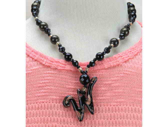 #748: 1/Kind Necklace w/Semi Precious Gems! Unique "W" Initial Pendant!