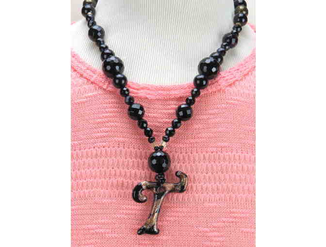 #749: 1/Kind Necklace w/Semi Precious Gems! Unique "T" Initial Pendant!