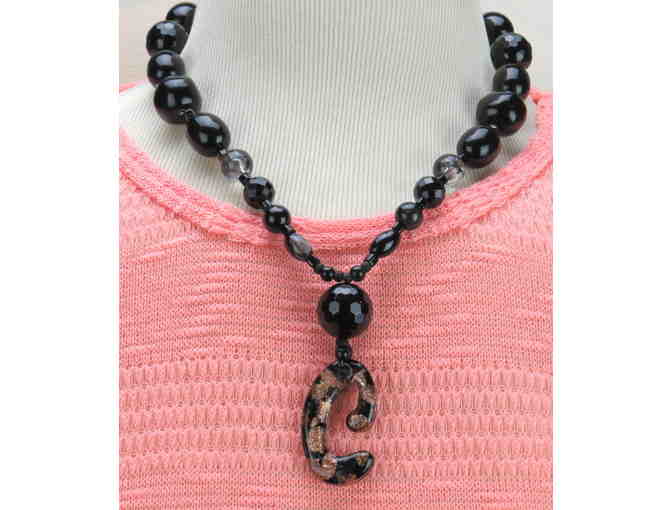 #750: 1/Kind Necklace w/Semi Precious Gems! Unique "L" Initial Pendant!