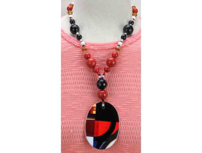 #763: 1/Kind Necklace features Semi Precious Gemstones & Porcelain Art Pendant!