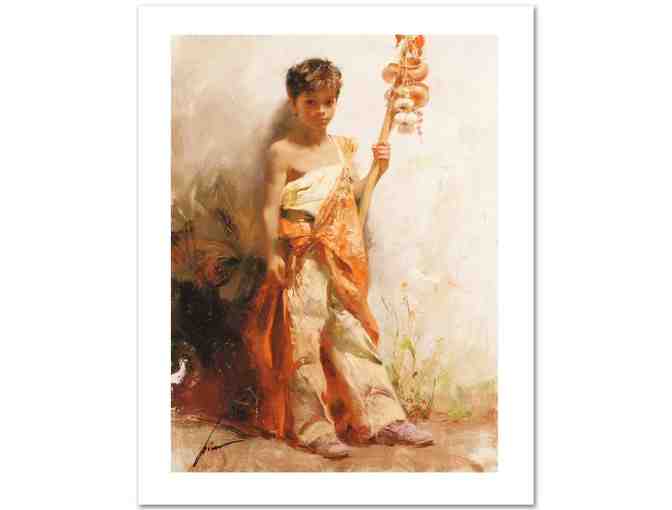 | "The Young Peddler" is a limited edition giclee on paper, numbered and hand signed by Pino (1939-2010)! Includes Certificate of Authenticity! Measures approx. 18" x 23" (with border), 15" x 20" (image). ABOUT THE ARTIST: