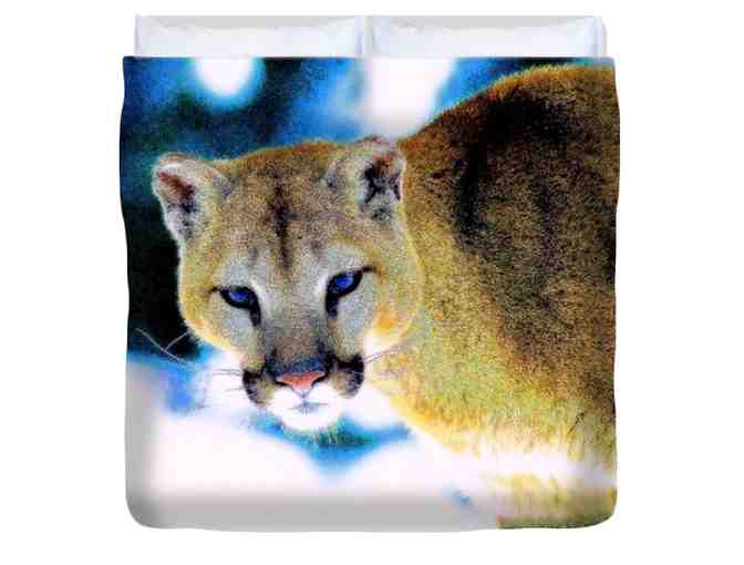 003-D: "A COUGAR IN WINTER": CUSTOM DESIGNED KING SIZE ART DUVET!