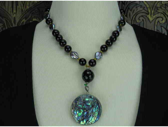 1/KIND Breathtaking Necklace features Paul Shell Pendant, Onyx, and Coin Pearls!!