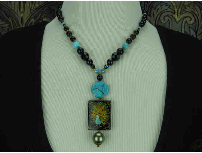 1/Kind Breathtaking Necklace w/Deluxe Art Pendant, Turquoise, Onyx, South Sea Shell Pearls