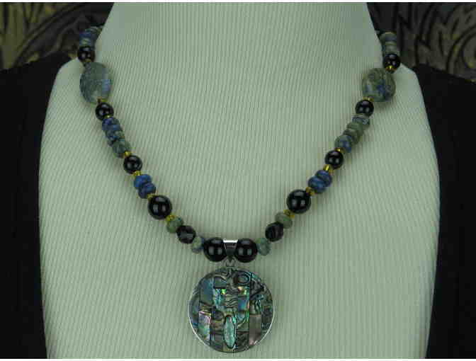 1/KIND Captivating Necklace w/Paua Shell, Onyx, Agate and Heshi Beads!