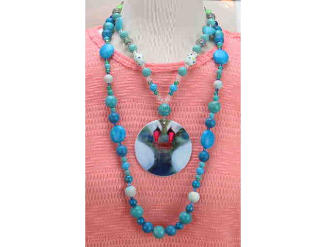 1/Kind Necklace with Semi Precious Gems and Porcelain Art Pendant! #727