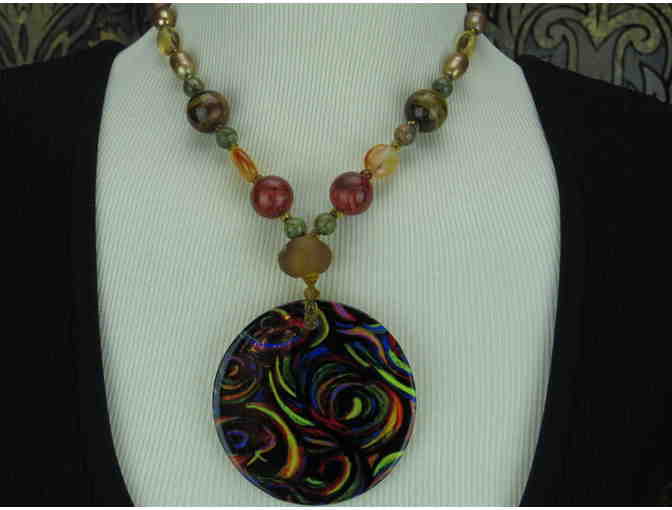 1/Kind!: Porcelain Art Pendant 1/KIND Necklace w/ Citrine, Jasper, Pearls, Tigers Eye