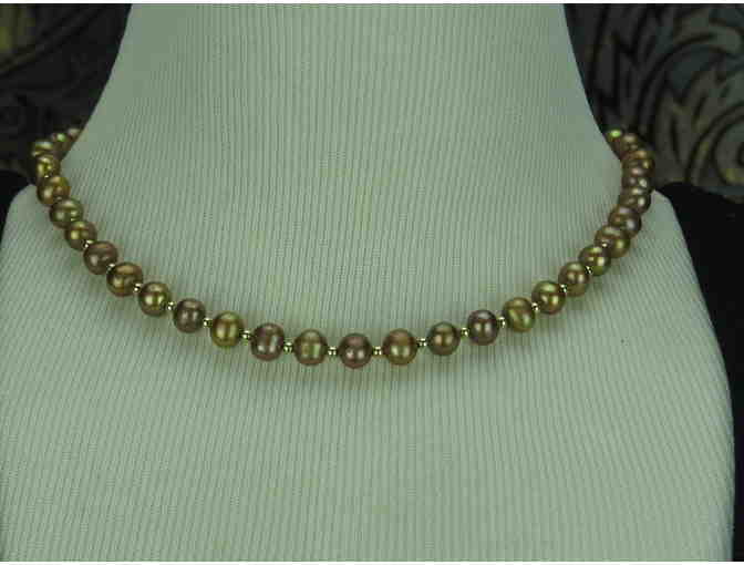 BRONZE FRESHWATER PEARLS W/14 kt GOLD BEAD SPACERS AND BRACELET, #132