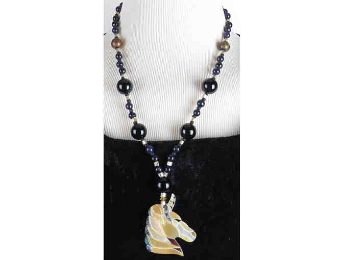 Carved MOP Horse Featured in this 1/KIND GEMSTONE NECKLACE #377