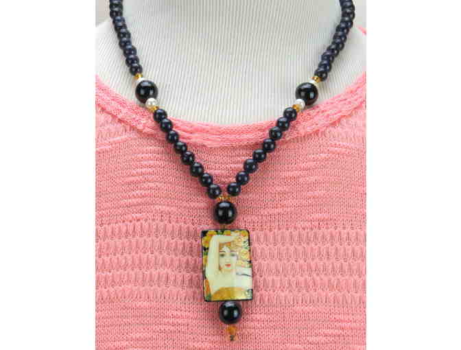 1/Kind Necklace with Semi Precious Gems! w/ Unique Art on Onyx Pendant! #740