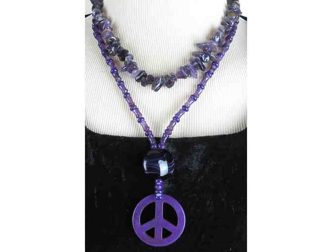 Peace Train GEMSTONE NECKLACE w/Amethyst, Howlite and Flourite Gems! #378