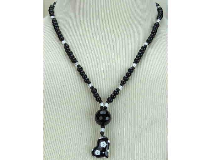 - FEATURES: BLACK ONYX, OBSIDIAN, HEART PENDANT DROP