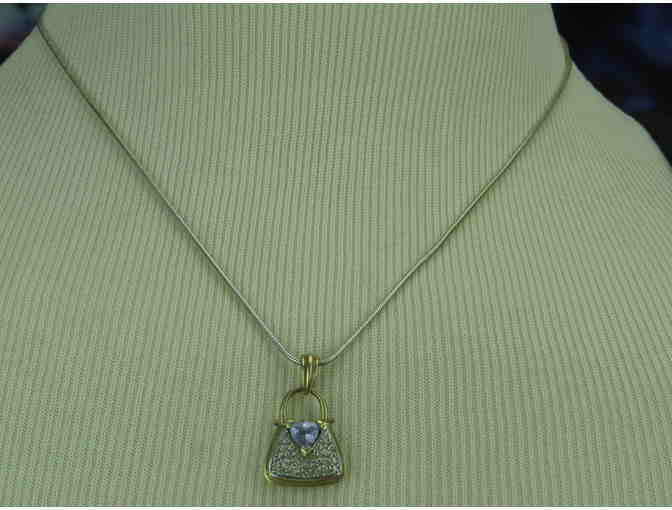 N9: Tanzanite and Diamond Purse Pendant on 14 kt White Gold Necklace