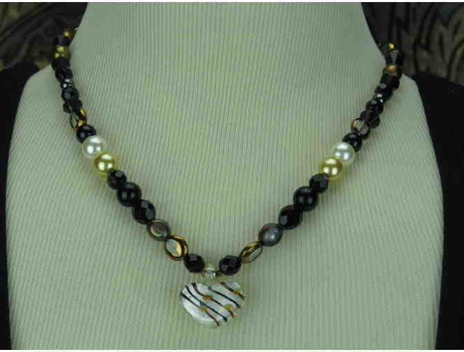 Romantic Classic Necklace w/Onyx, Freshwater and South Sea Shell Pearls, Heart Drop