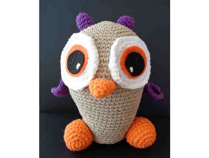 This is adorable Ophelia the Owl. He has extra big eyes and stands 8" tall. 100% cotton. All soft material. Great gift! Hand-crocheted for Pap 911 Auction by devoted supporter!
